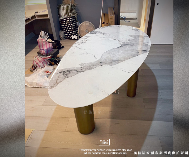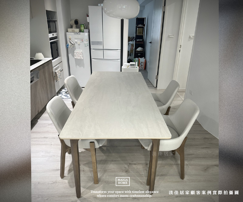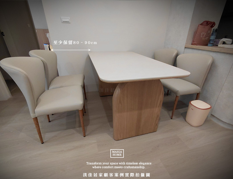 首頁/News/岩板餐桌尺寸怎麼選?從空間坪數到使用人數完整解析 岩板餐桌尺寸怎麼選?從空間坪數到使用人數完整解析maiga-shop8882026 年 2 月 11 日News 在規劃餐廳空間時,餐桌尺寸往往決定了整體動線與舒適度。近年來質感與實用兼具的岩板餐桌與陶板餐桌,成為許多家庭的首選。然而每個空間比例與使用需求都不同,與其勉強挑選既有規格,不如透過客製化尺寸與尺寸訂製,打造真正符合生活習慣的餐桌配置。選對尺寸,才能讓用餐時光更加自在從容。 ① 依照使用人數選擇岩板餐桌尺寸 2人:120x70cm4人:140–160cm6人:180–200cm8人以上:220cm以上「若有客製需求,也可以依空間比例訂製尺寸」 ▲此顧客案例選用 110 × 50 公分的岩板桌面,花色為溫潤柔和的「瑪莎奶茶」在光線映照下散發淡雅細緻的紋理搭配俐落穩重的腳座設計,即使擺放兩張餐椅,也依然保有舒適不擁擠的距離感。尺寸恰到好處,特別適合小坪數空間與小家庭使用,讓日常用餐時光在溫柔質感中悄然展開。 ▲此顧客案例選用 140 × 80 公分的岩板桌面,花色為德利豐的「清水朱尼白」細緻純淨的紋理搭配實木溫潤原木色調桌腳,自然質地與岩板相互呼應讓整體氛圍更顯柔和舒適。配置上以兩張餐椅搭配一張長凳,日常兩人用餐時寬敞自在;當親友來訪,也能靈活容納更多座位,從容應對偶爾的聚餐時光 ▲此顧客案例選用 180 × 80 公分的尺寸,花色來自渼佳嚴選系列的「黃洞石」桌腳是實木金斯柚色調,質樸溫暖,讓侘寂感更加柔和而具層次。配置四張寬敞座墊的餐椅,即便多人用餐,也能保持舒適的距離感。 ▲此顧客案例選用 200 × 90 公分的岩板桌面,花色為德利豐的「聖勃朗魚肚白」細緻觸感的桌面搭配不規則俐落的金屬桌腳,線條簡約而大方,讓整體氛圍既現代又舒適 ▲此顧客案例選用 240 x 100 公分的陶板桌面,花色為西班牙的「經典摩卡黑」仿自然石的立體紋理面搭配訂製的金屬桌腳,簡潔而有格調。(腳座顏色皆可訂製) ▲如果不想侷限於單純的方桌形式,也可以參考此顧客案例製作水滴造型的桌面,用流暢的弧線取代俐落直角,讓整體輪廓少了些制式感,多了一份柔和與靈動。 ② 小坪數空間需要注意什麼? 在規劃岩板餐桌尺寸時,除了考量桌面的長寬比例與用餐人數,更要同步思考整體餐廳動線規劃。合適的餐桌與空間比例,才能讓餐廳既實用又舒適。 餐椅拉開需要空間 此外,餐椅拉開所需的活動範圍也不容忽視。無論是有扶手餐椅或厚坐墊設計,都需要額外預留空間,讓入座與起身更加從容自在。當岩板餐桌尺寸與空間比例達到平衡,餐廳不僅視覺上更顯寬敞,也能真正回應生活的使用需求。 餐桌與牆面至少保留80–90cm 一般建議餐桌與牆面之間至少預留 80–90 公分距離,確保日常行走、上菜與清潔都能順暢進行,避免動線擁擠,讓空間保有自然的延伸感。 ③ 圓桌還是長桌比較適合? 圓桌適合:◇ 小家庭◇ 空間中央擺放 ▲此顧客案例擺放於開放式空間中,原先規劃選擇直徑 90 公分的陶板圓桌尺寸。經過實際空間比例的討論與評估後,我們將桌面比例改為左右延展的設計,讓整體尺度更加貼合場域。 可以先參考我們的圓桌款式,也可以來圖訂製喔! 長桌適合:◇ 靠牆擺放◇ 長型客餐廳 ▲此顧客案例中160×80公分的陶板餐桌採靠牆擺放方式,這也是目前多數家庭最常見的配置形式。當餐桌緊鄰牆面時,空間利用率更高,特別適合坪數有限或希望保留主要走道寬度的場域規劃。 ④ 岩板餐桌厚度與視覺比例 在挑選岩板餐桌時,除了尺寸長寬之外,「厚度」與「結構做法」也是影響視覺與使用感受的重要關鍵。市面上常見的 12mm岩板 為一體成型板材,質地紮實,整體線條俐落,適合希望呈現輕薄現代感的空間風格。 ▲此顧客案例選用 1.2 公分厚度的岩板,搭配全滿式石下板結構,讓整體桌面更加穩定紮實。在製作石下板時,我們特別將邊緣修飾為內收斜角,使桌面從側面看起來更顯輕盈細緻。透過比例與細節的拿捏,不僅保有結構強度,也讓岩板餐桌呈現更柔和俐落的視覺層次。 而另一種常見做法是 6mm岩板貼合 結構,將6mm陶板or岩板貼合於基底板材上,再做整體包覆處理。這種方式在視覺上可以呈現較厚實的桌面效果,同時兼顧穩定度與結構強度,也更適合需要客製尺寸的大型餐桌。 ▲我們會依據實際桌面尺寸與整體比例,量身製作相對應厚度的石下板結構。透過細緻的尺寸拿捏與結構配置,讓桌面在保有穩定支撐力的同時,也維持視覺上的輕盈與協調 桌腳比例影響整體視覺感。當桌面較薄時,桌腳設計若過於厚重,會產生頭重腳輕的失衡感;反之,若桌面厚實,搭配過於纖細的腳座,則可能顯得支撐不足。因此在尺寸訂製與客製化規劃時,桌面厚度、長寬比例與桌腳造型需整體考量,才能讓岩板餐桌呈現協調而穩定的視覺效果。 挑選合適的岩板餐桌,不只是挑一張桌子,更是在為生活留下舒適的呼吸與流暢的動線。若你也想找到最適合自家空間的尺寸與比例,不妨與我們一起討論專屬規劃,讓每一次用餐都成為自在而愉悅的時光。➡ 立即預約專屬諮詢,打造專屬你的理想餐桌空間。 電子報更新 Enter your email address below and subscribe to our newsletter 訂閱