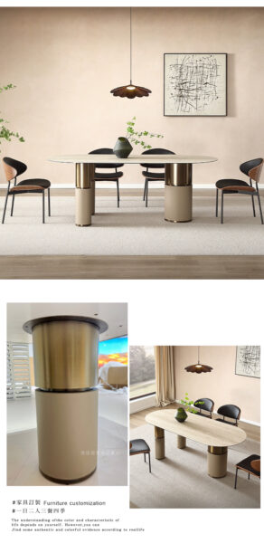 馬鞍皮拼接圓柱腳座陶板餐桌|可客製